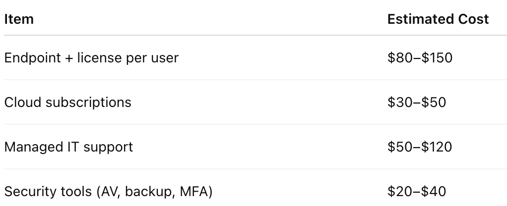 Plan IT spend by user, not by location. This makes your cost model predictable and scalable.