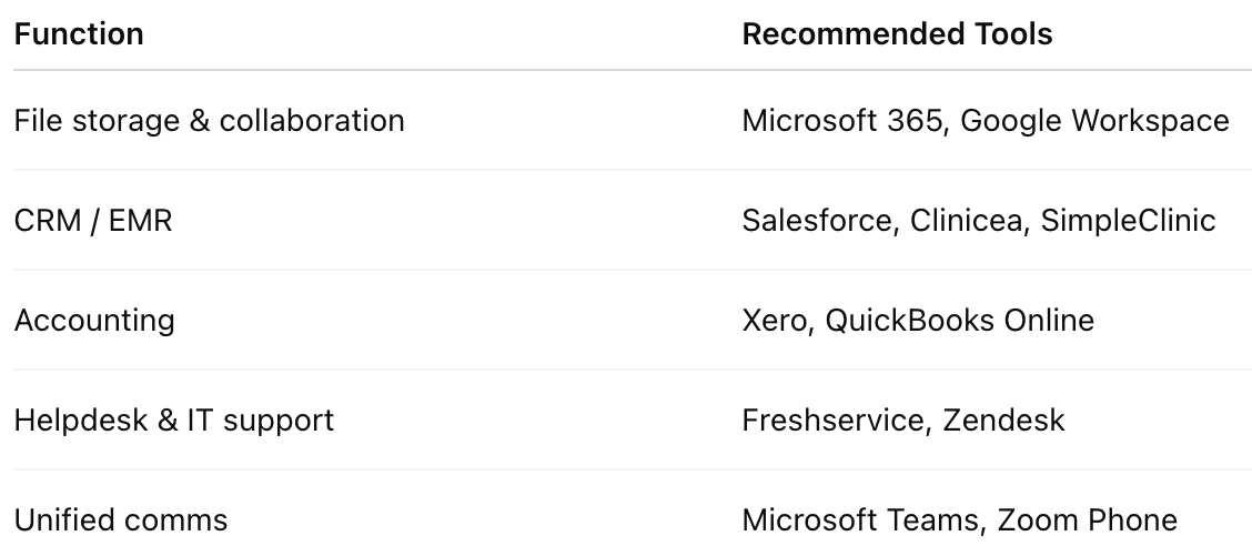 👩⚕️ Healthcare tip: Support needs to cover EMR, printer, scanner, and CCTV troubleshooting, not just cloud apps.